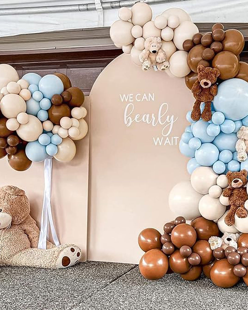 100pcs Baby Blue, Apricot & Mocha Brown with Teddy Bear Head Foil Balloons Garland Theme Set For Party Decoration And Celebration