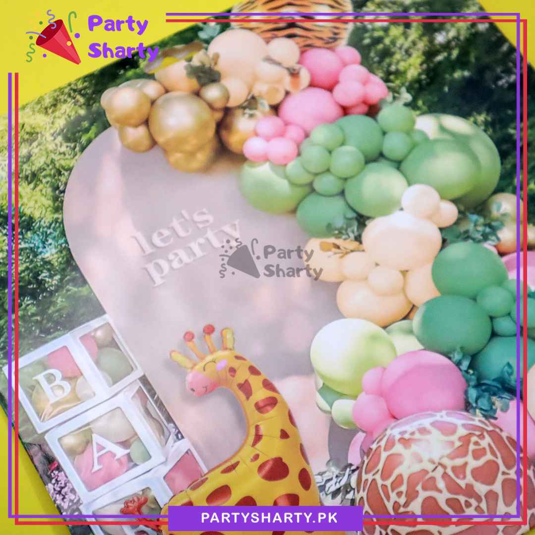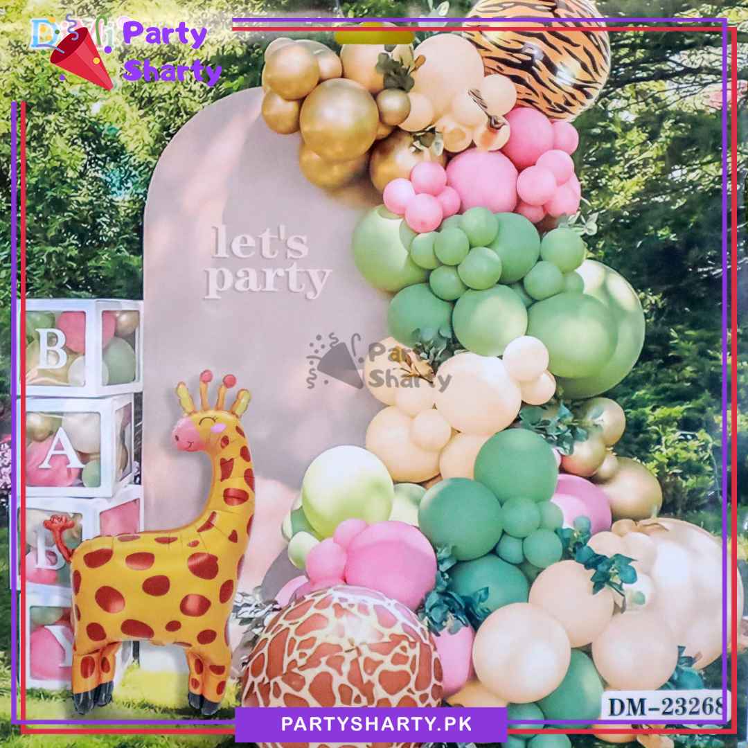 - Package Include: 1pc Giraffe Foil Balloon (Size: Approx. 32 inches) + 2pcs 4D Jungle Orbz Foil Balloon (Size: 18 inches) + 12 inches 10pcs Latex Balloons (Olive Green & Ivory Mixed) + 10 inches 55 Latex Balloons (Olive Green, Baby Pink, Ivory & Golden Mixed) + 5 inches 30 Latex Balloons (Olive Green, Baby Pink, Ivory & Golden Mixed) + Arch tape + Dotted tape