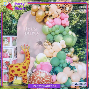 100pcs Olive Green, Baby Pink, Ivory & Golden Balloons with Giraffe Foil Balloon Set For Jungle / Safari Theme Decoration