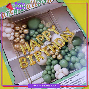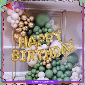 - Party Decoration Kit includes: 13pcs Happy Birthday Foil Banner - Golden + 18 inches 5 pcs Latex Balloons (Olive Green, Golden & Apricot Mixed) + 10 inches 48 pcs Latex Balloons (Olive Green, Golden & Apricot mixed) + 5 inches 10 pcs Latex Balloons (Olive green & Apricot Mixed) + Arch Tape + Dotted Glue Tape.