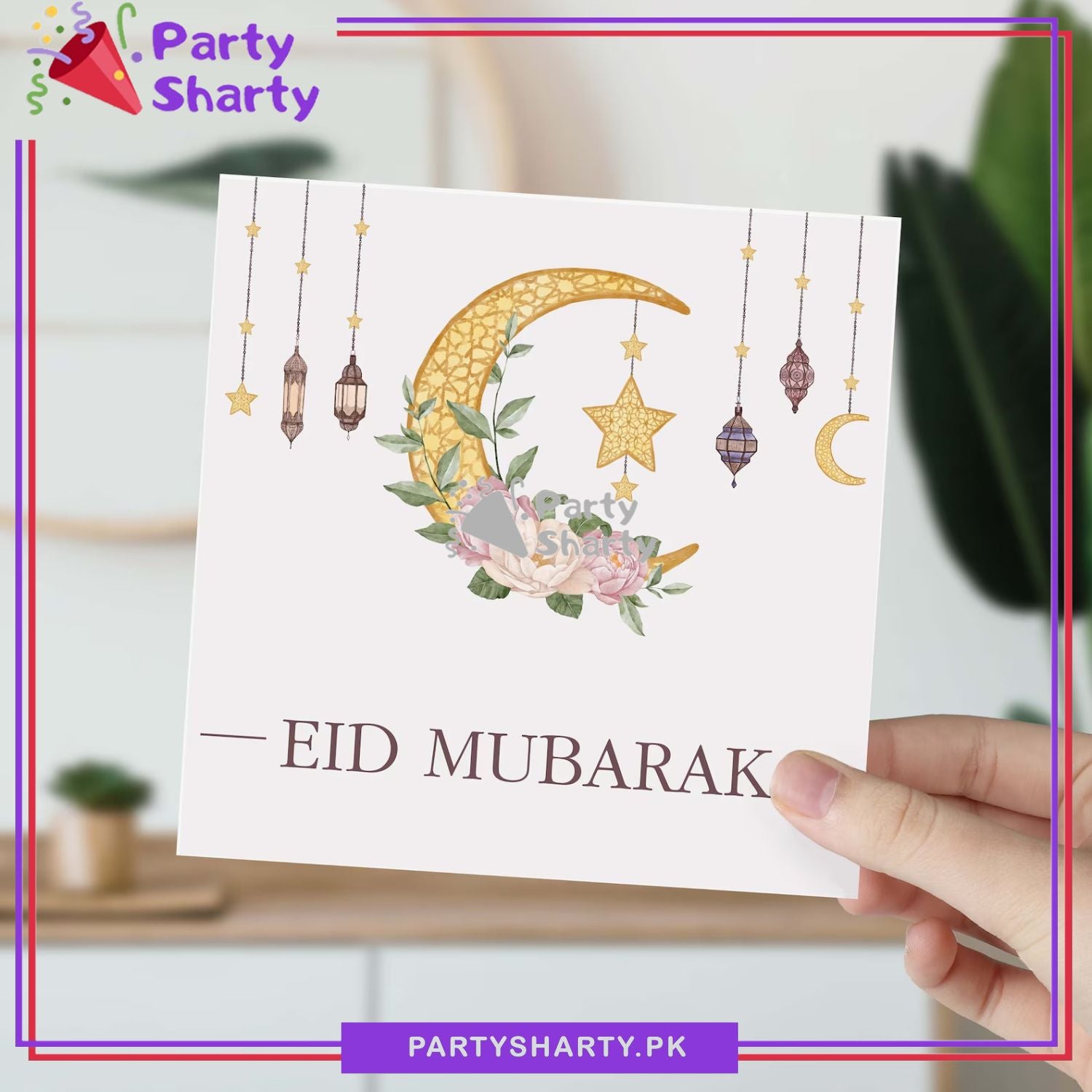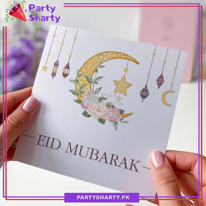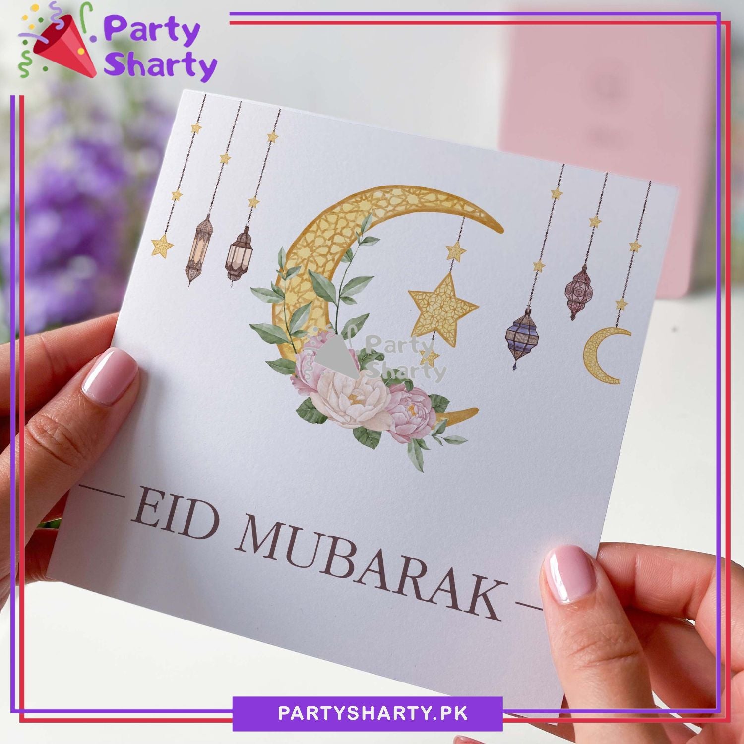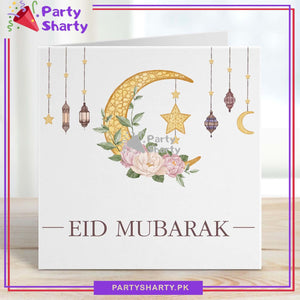 Eid Mubarak Moon, Star, Lantern & Floral Design Greeting Card
