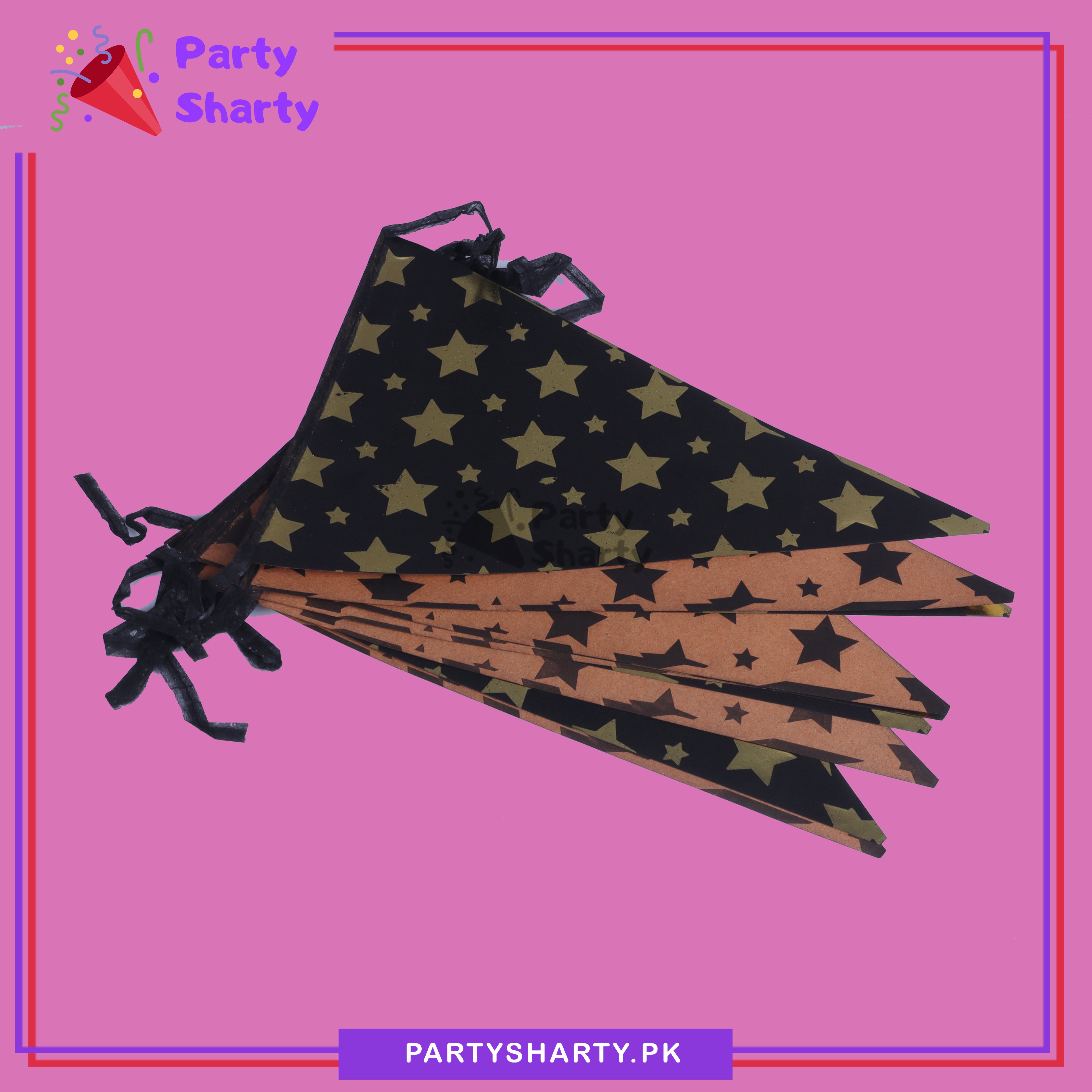 Golden Star Foil Printed Black Party Flag Bunting Pack of 10 For Party Decoration & Celebration