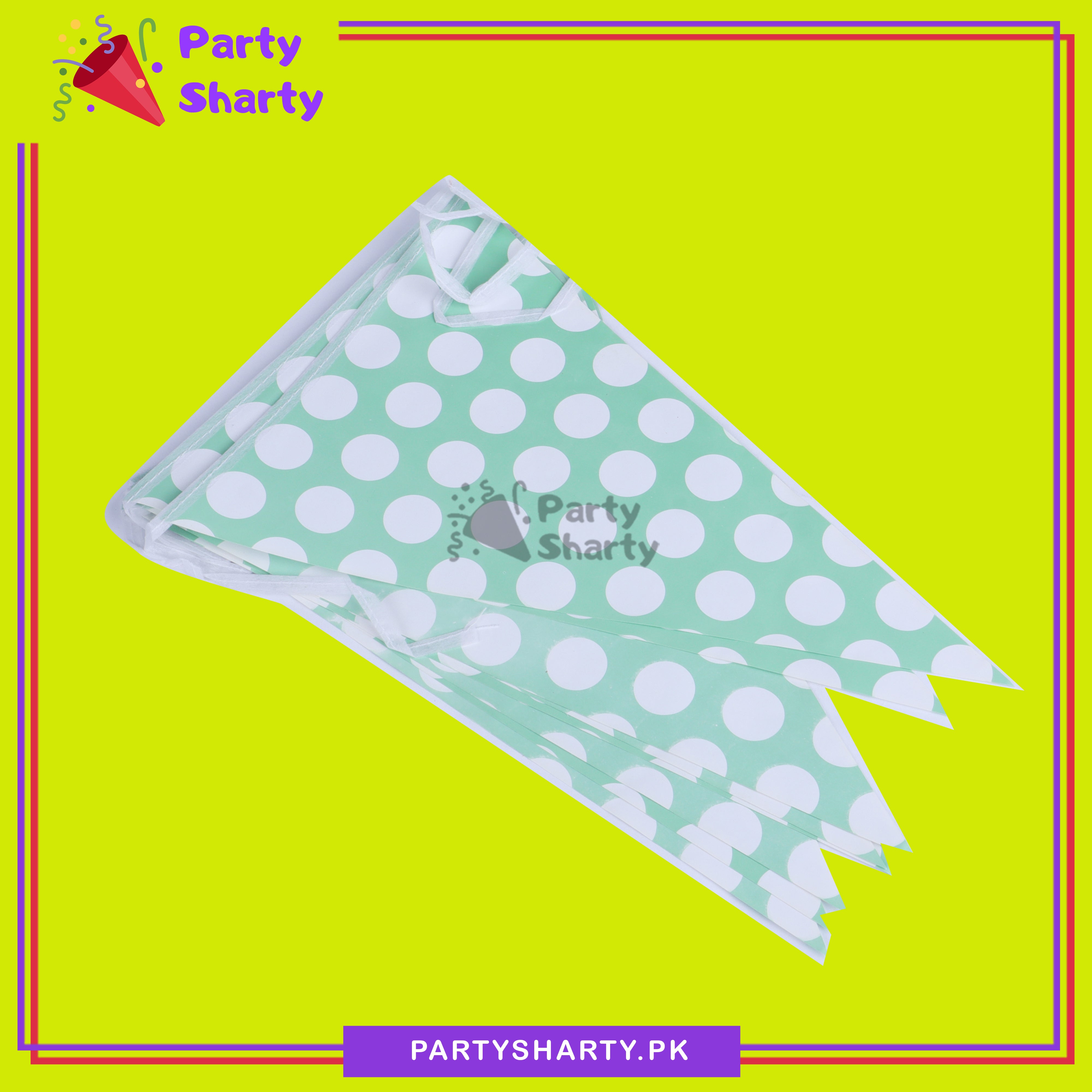 Polka Dot Green Printed Party Flag Bunting Pack of 10 For Green Theme Decoration