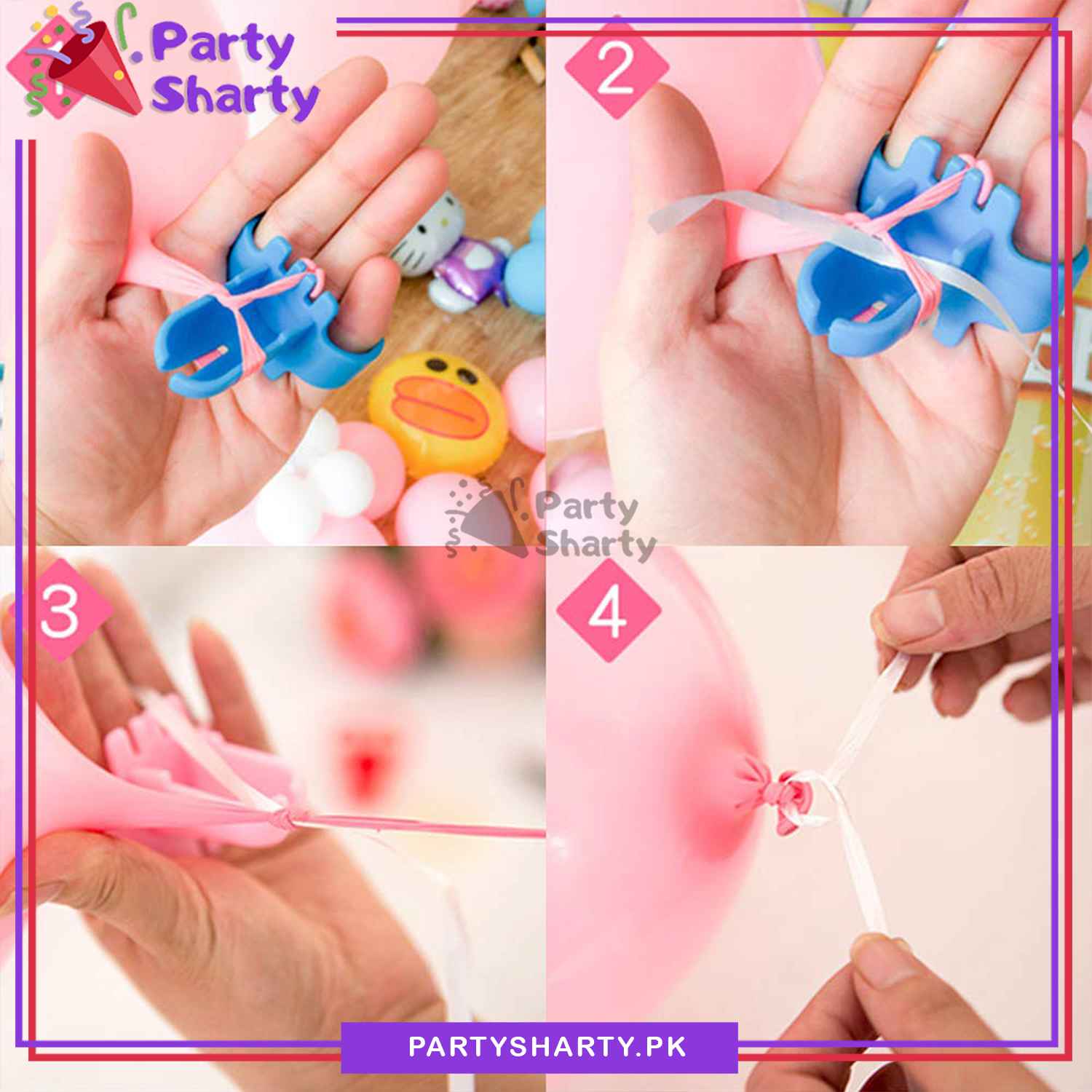 【HIGH QUALITY】 Excellent handmade soft materials and exquisite workmanship, hand-crafted carefully down to every detail to give a stunning, magical, cute, lovely chic look. The balloon tie tool set are made of high quality eco-friendly durable hard plastic, approximate size is 2.8" * 2.2" * 1.8" (L*W*H)