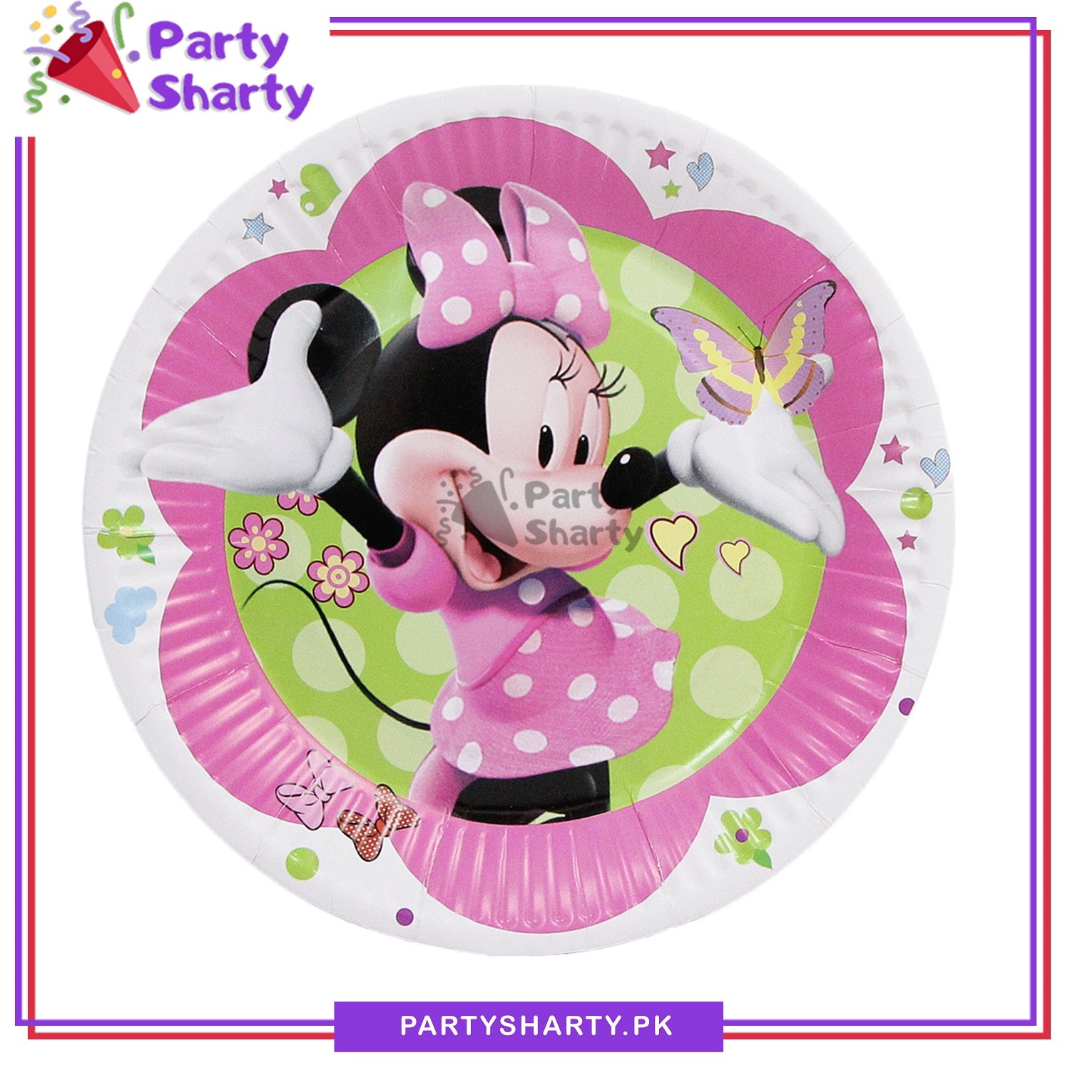 - Let your next celebration take a flight of fancy with these disposable paper plates! Sturdy paper plates are perfect for serving meals and hors d'oeuvres. Pair with other Minnie Mouse theme accessories for a coordinated theme.