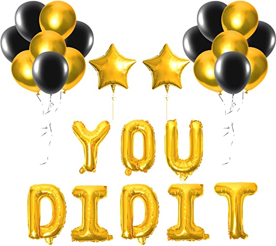 • Size: “YOU DID IT” foil balloons set:16inch, star shaped foil balloons:18inch other balloons approx 10 inches
