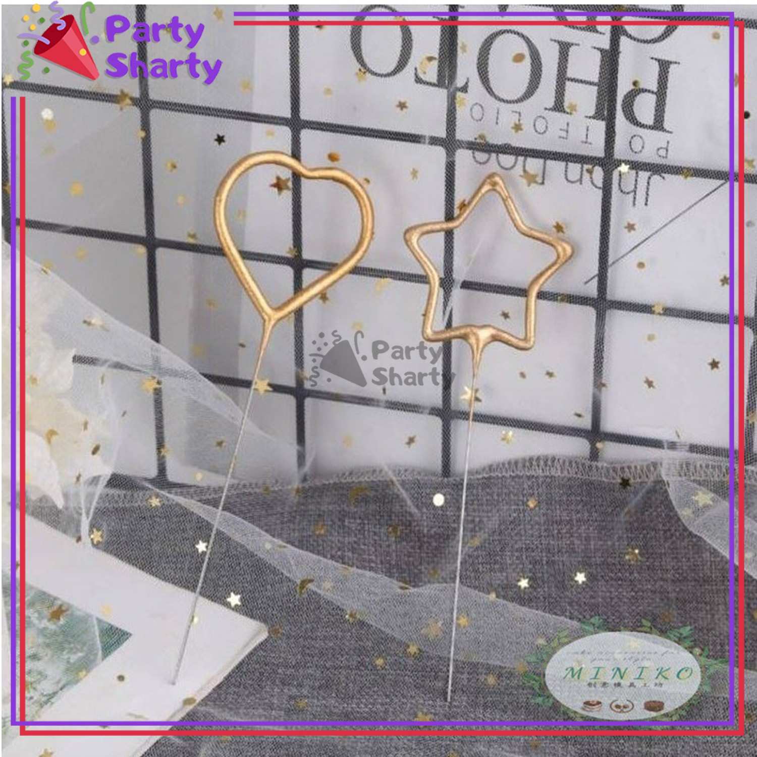 Star / Heart Shaped Sparkle Candle Birthday Party - 5cm