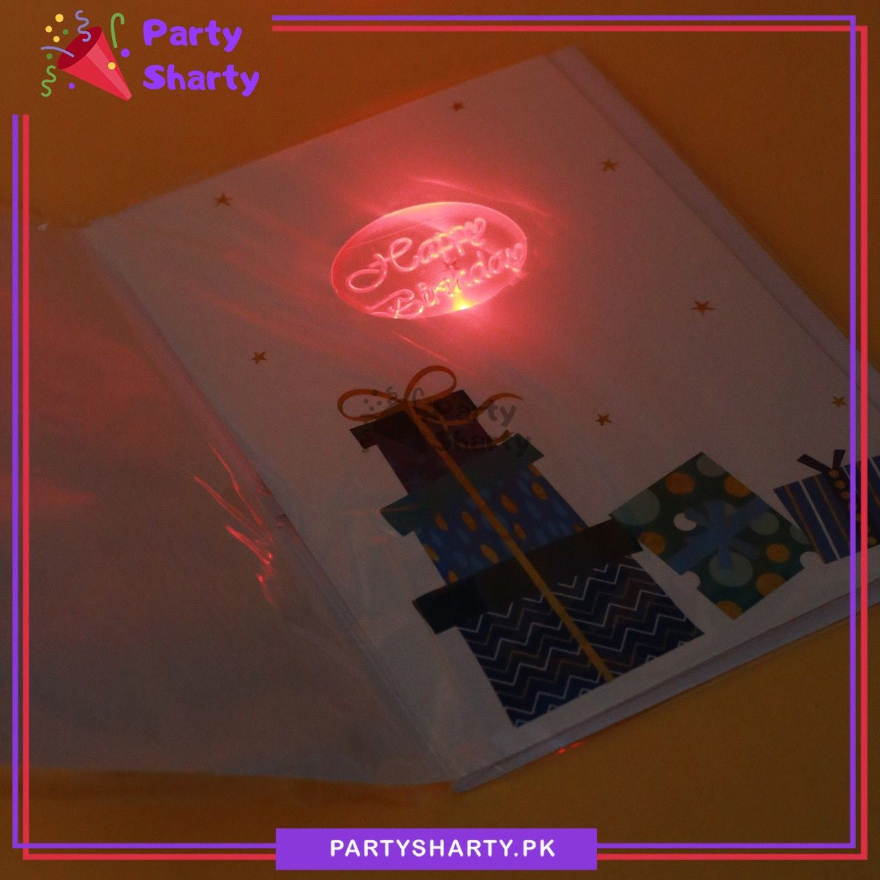 • Pattern Type : Embossed Gift Box & Balloons Musical Greeting card with inside Light.