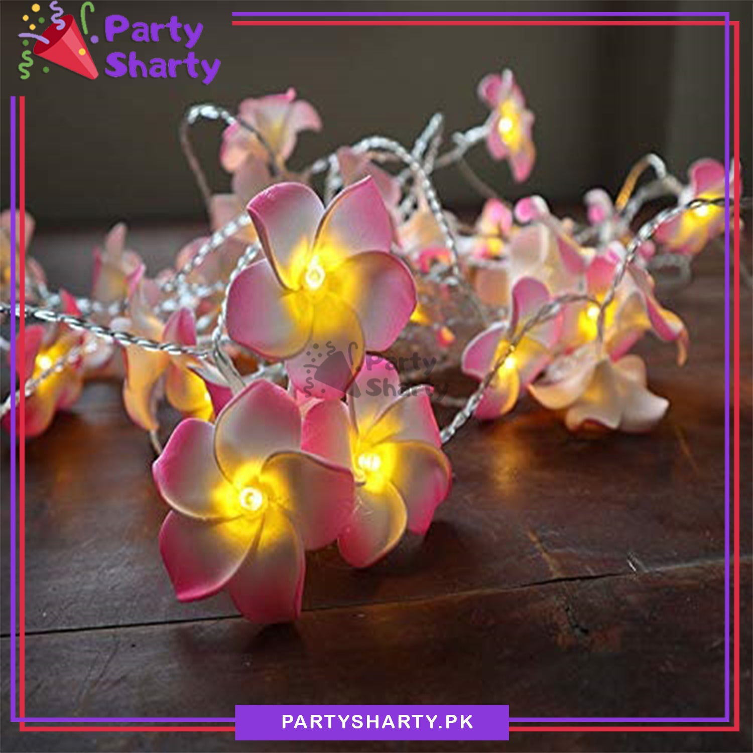10 LED Pink Flower String Lights - Battery Operated For Party and Room Decoration