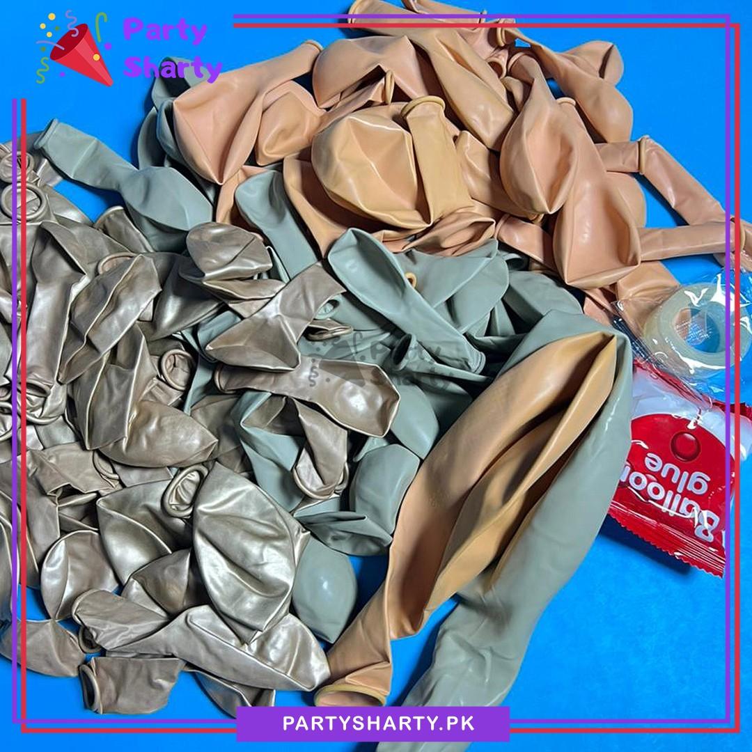 - Package Include: 2pc 18inches Apricot & Sand White Latex Balloon + 20pcs 12inches Latex & Metallic Balloons (Apricot, Sand White & Metallic Champagne Gold Mixed) + 46pcs 10inches Latex Balloons (Apricot, Sand White & Metallic Champagne Gold Mixed) + 30pcs 5inches Latex Balloons (Apricot, Sand White & Metallic Champagne Gold Mixed) + Arch Tape + Dotted Tape
