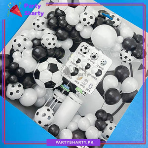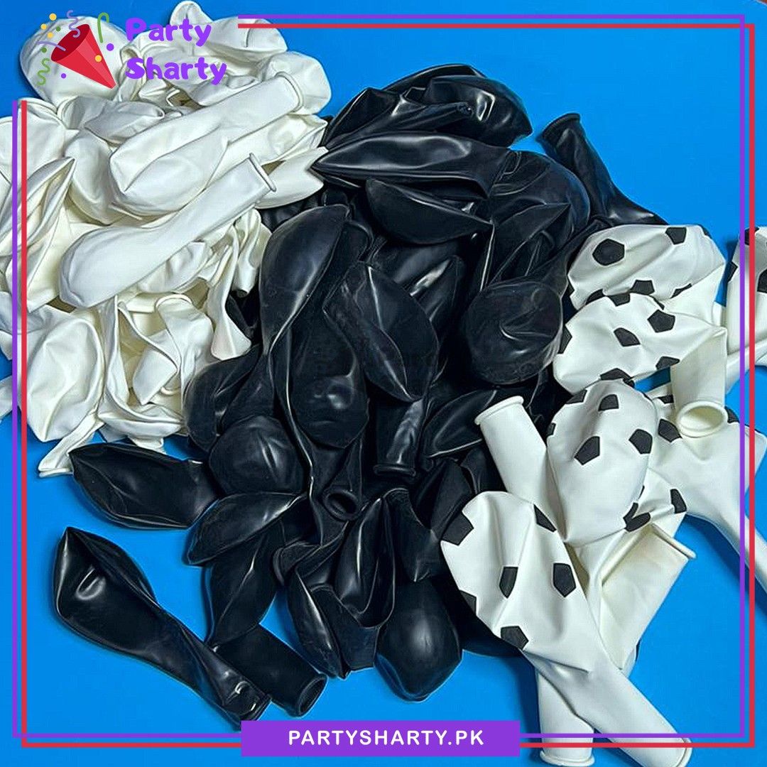 - Package Include: 1pc Football Printed Foil Balloon Approx. 22inches + 1pcs 18inches Foot Ball Round Foil Balloon + 9pcs 12inches Foot Ball Printed Latex Balloons + 20pcs 5inches Latex Balloons (White & Black Mixed) + 54pcs 10inches Latex Balloons (White & Black Mixed) + 10pcs 12inches Latex Balloons (White & Black Mixed) + 2pcs 18inches Latex Balloons (White & Black) + Arch Tape + Glue Dots + Ribbon