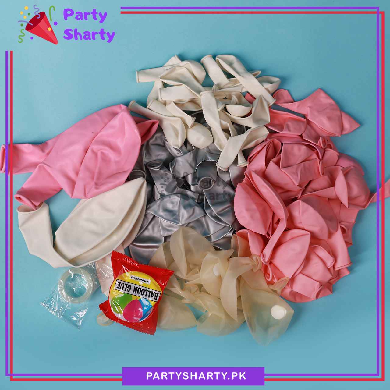 - Package includes 18inches 4pcs Latex Balloons (Baby Pink & White Mixed) + 12 inches 10pcs Latex/Metallic Balloons (Baby Pink & Metallic Silver Mixed) + 10 inches 42pcs Latex/Metallic Balloons (Baby Pink & Metallic Silver Mixed) + 5 inches 20pcs Latex Balloons (Baby Pink & White Mixed) + 12pcs 3D Butterfly +10pcs Silver confetti Balloons + Arch Tape + Dotted Tape