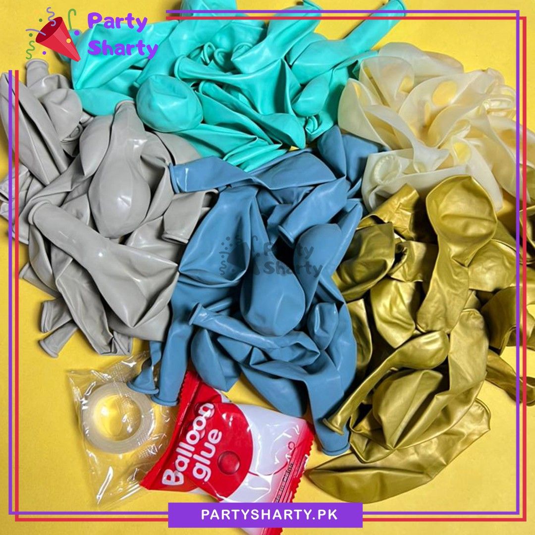 100pcs Dusty Blue, Sea Green, Sand White & Golden Metallic Balloons Garland Theme Set For Party Decoration