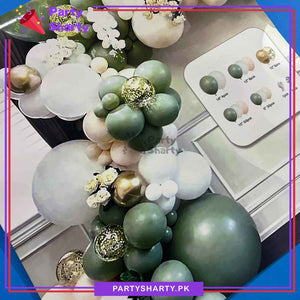 - Party Decoration Kit includes: 18 inches 4pcs Latex Balloons (Olive Green & White Mixed) + 12inches 6pcs Latex Balloons (Olive Green, White & Apricot mixed) + 10inches 50pcs Latex Balloons (Olive Green, White & Apricot mixed) + 5inches 30pcs Latex Balloons (Olive Green, White & Apricot mixed) + Arch Tape + Dotted Glue Tape.