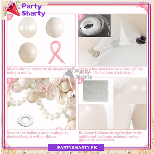 100pcs Pink Bow Long Balloons with Sand White, Pearl White & White Balloons Garland Theme Set For Bow Themed Party Decoration & Celebration