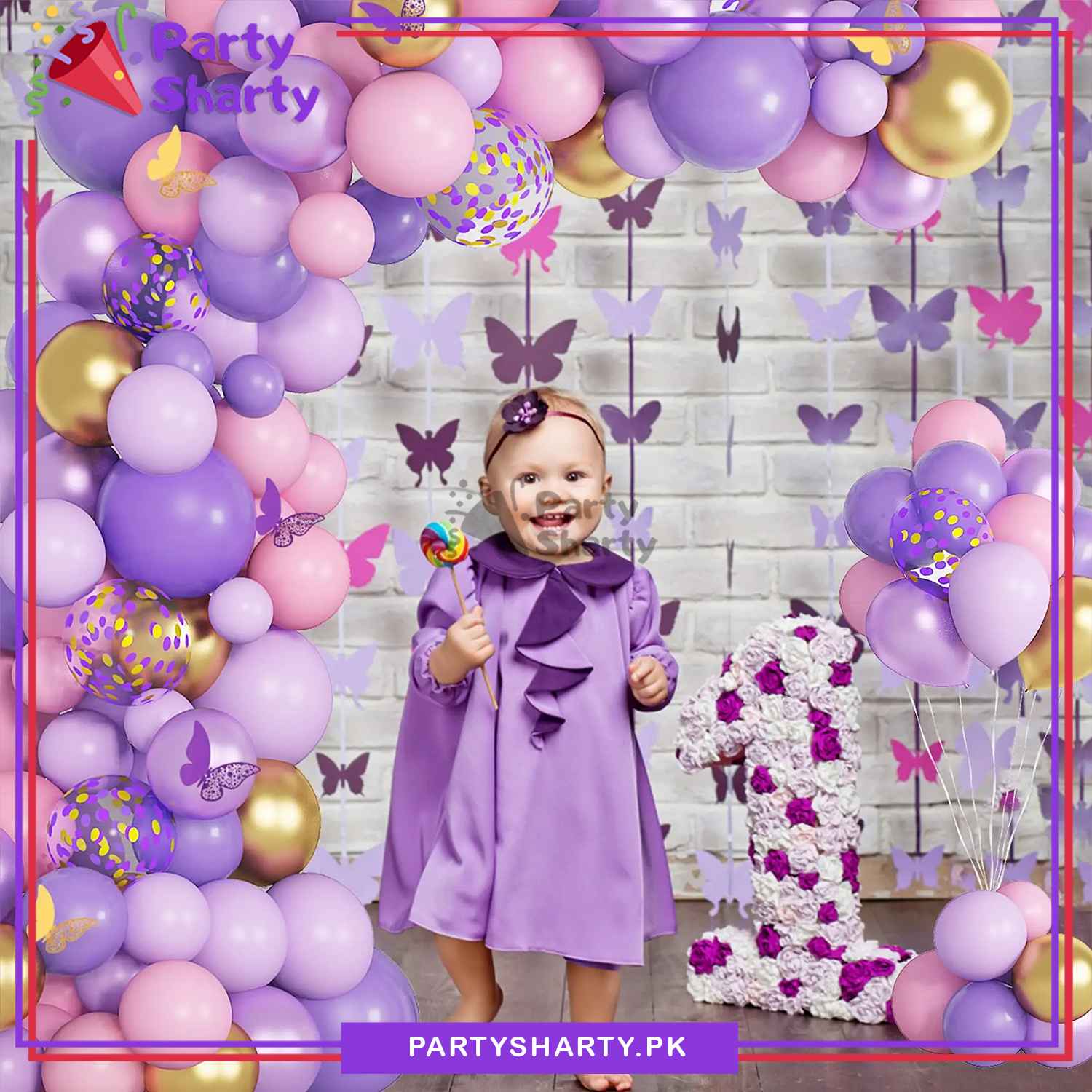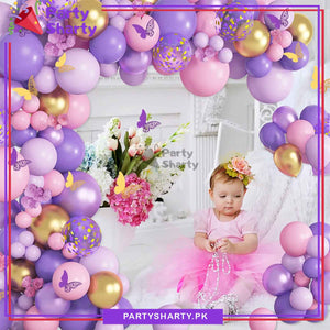 100pcs Pink & Purple Butterfly Theme Balloon Garland For Birthday Decoration and Party Celebrations