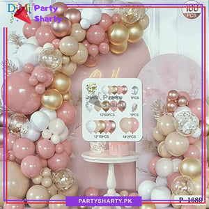 100pcs Retro Pink, White, Apricot, Rose Gold & Champagne Gold Metallic Balloons Garland Kit for Party Decorations