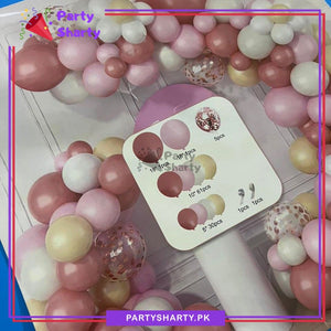 - Package Include: 2pcs 18inches Latex Balloons (Baby Pink & Retro Pink) + 5pcs 12inches Rose Gold Confetti Balloons + 61pcs 10inches Latex Balloons (White, Ivory, Baby Pink & Retro Pink Mixed) + 30pcs 5inches Latex Balloons (White, Ivory, Baby Pink & Retro Pink Mixed) + Arch Tape + Dotted Tape