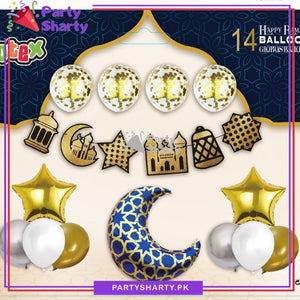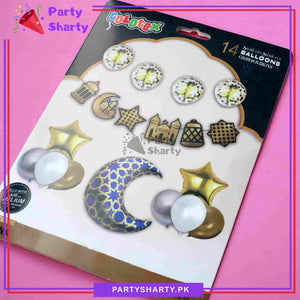 14pcs/set Ramadan Mubarak Theme Hangings with Foil Balloon For Ramadan Iftar Party Decoration and Celebration