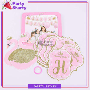 15pcs Pink Swan Theme Happy Birthday Glitter Card banner For Birthday Decoration and Celebration