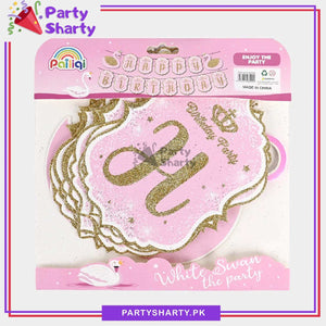 - Complete birthday decorations with this pink Swan princess design banner. This flag banner features pink.