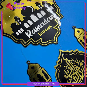 18inches Golden & Black Ramadan Kareem with Lantern Cutout Cardboard Hanging For Ramadan Decoration