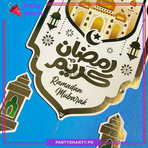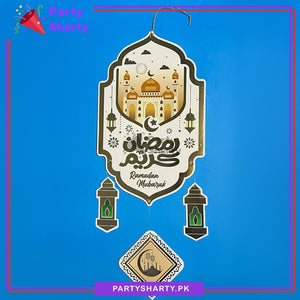 18inches White & Gold Ramadan Kareem with Lantern & Mosque Design Hanging For Ramadan Decoration