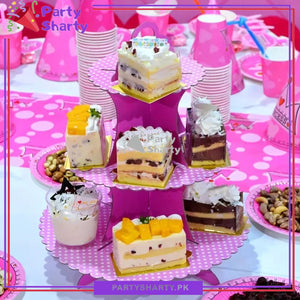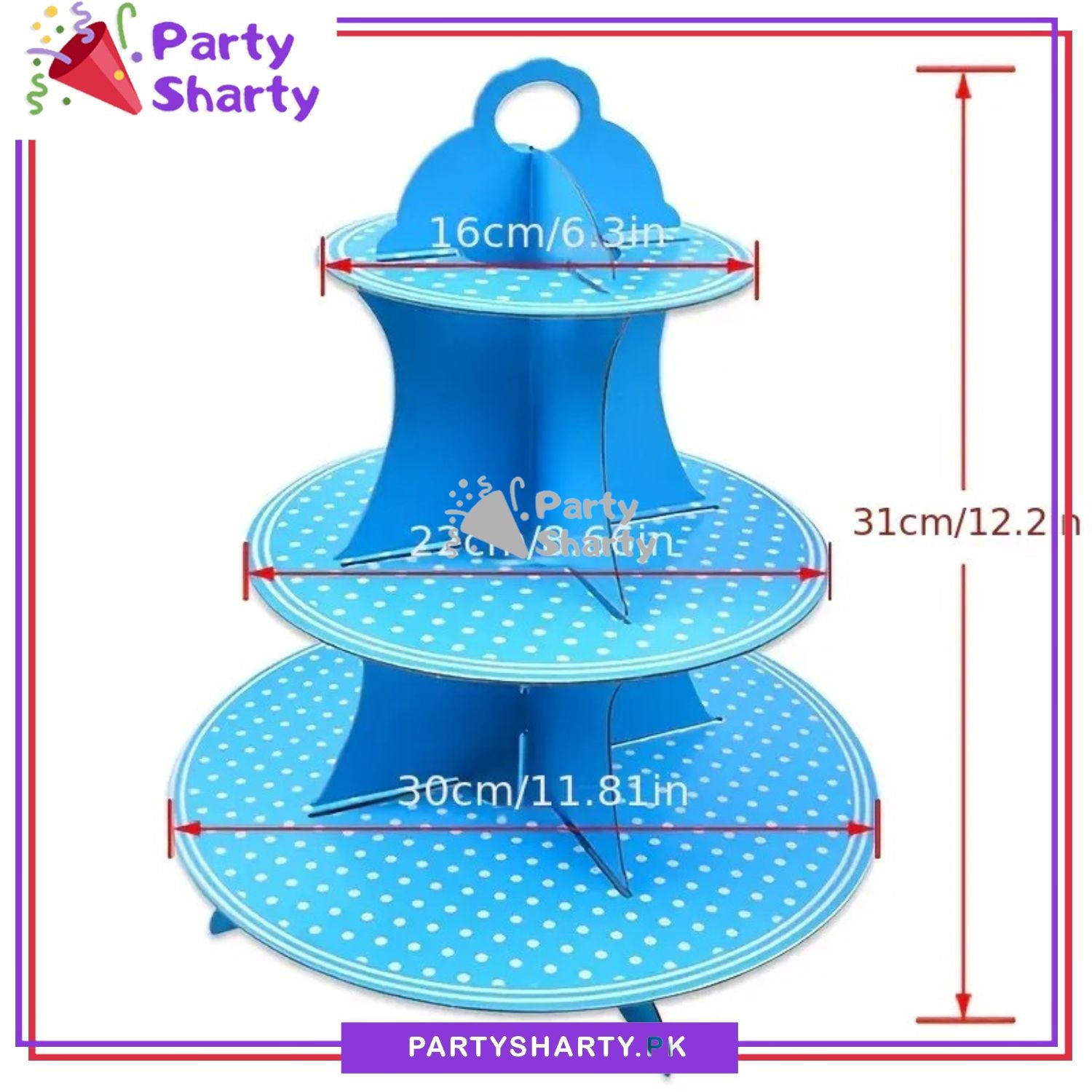 3-Tier Cupcake Stand, White Polka Dots Pattern Cardboard Cupcake Holder Stand For Birthday Party Decoration and Celebration