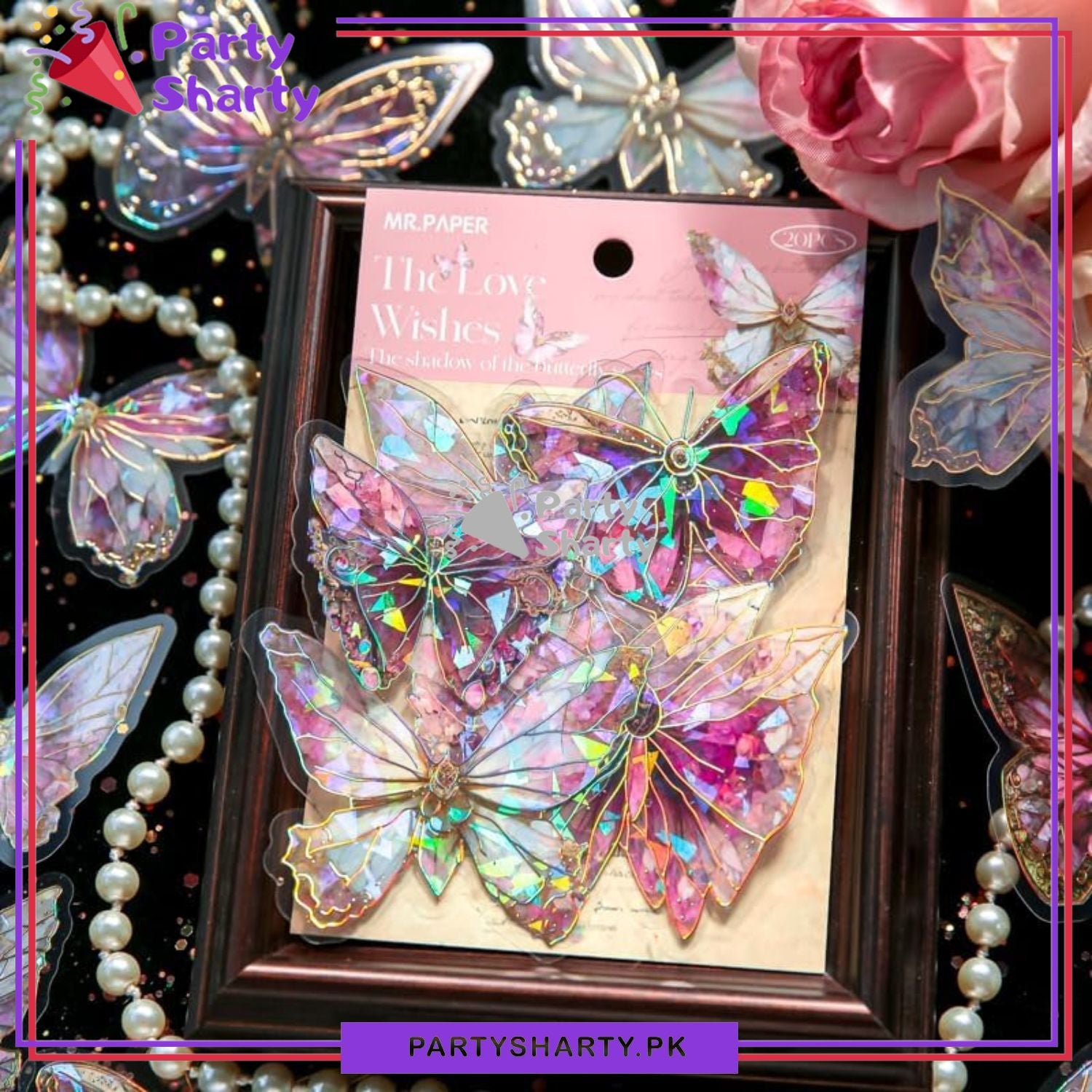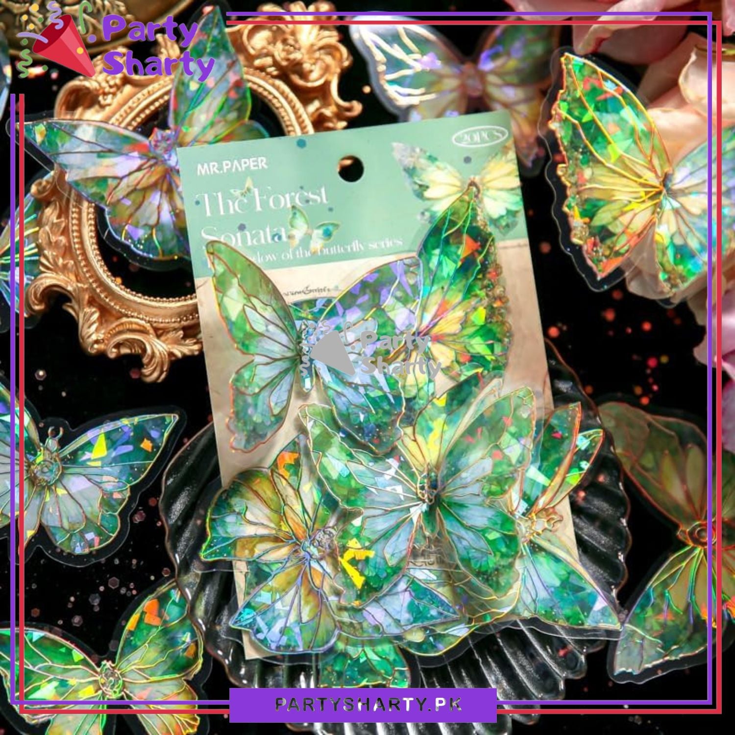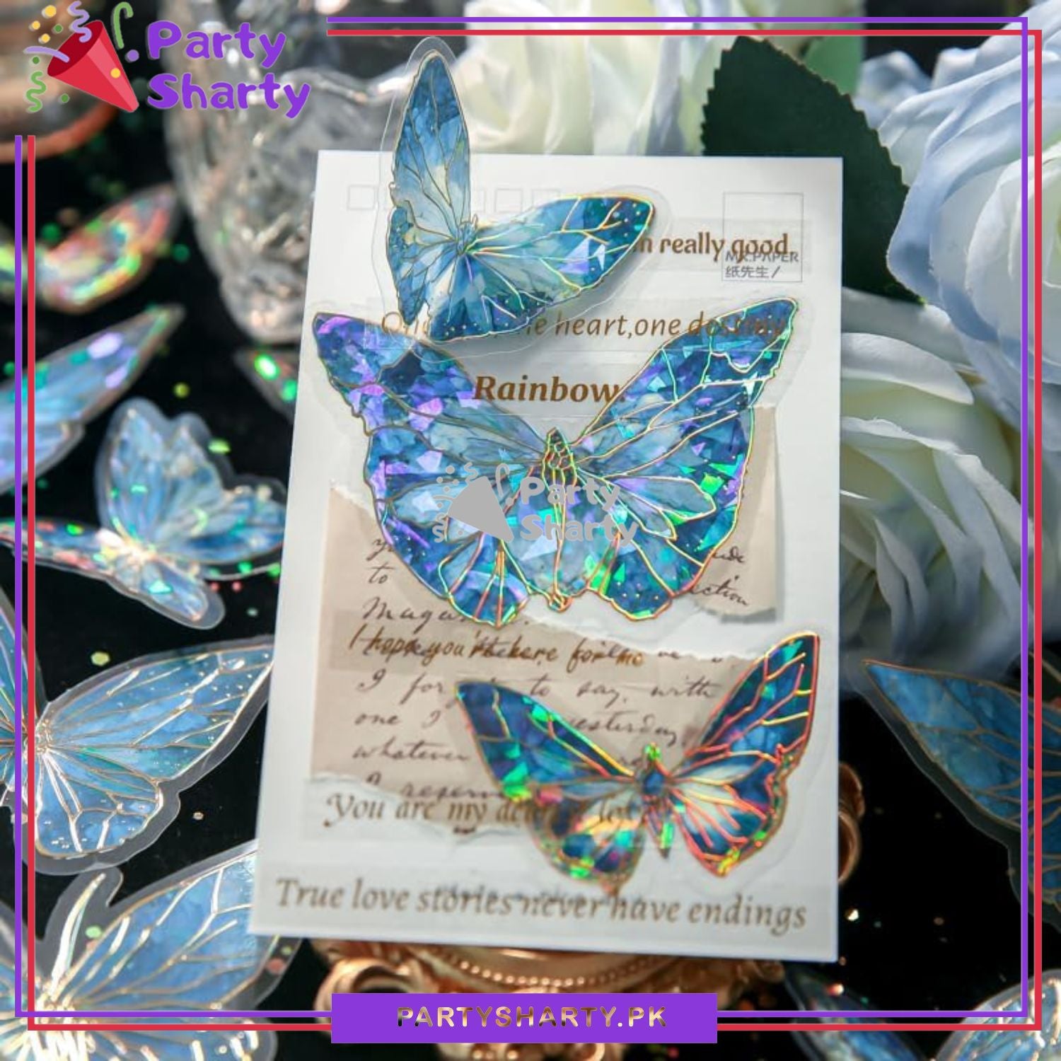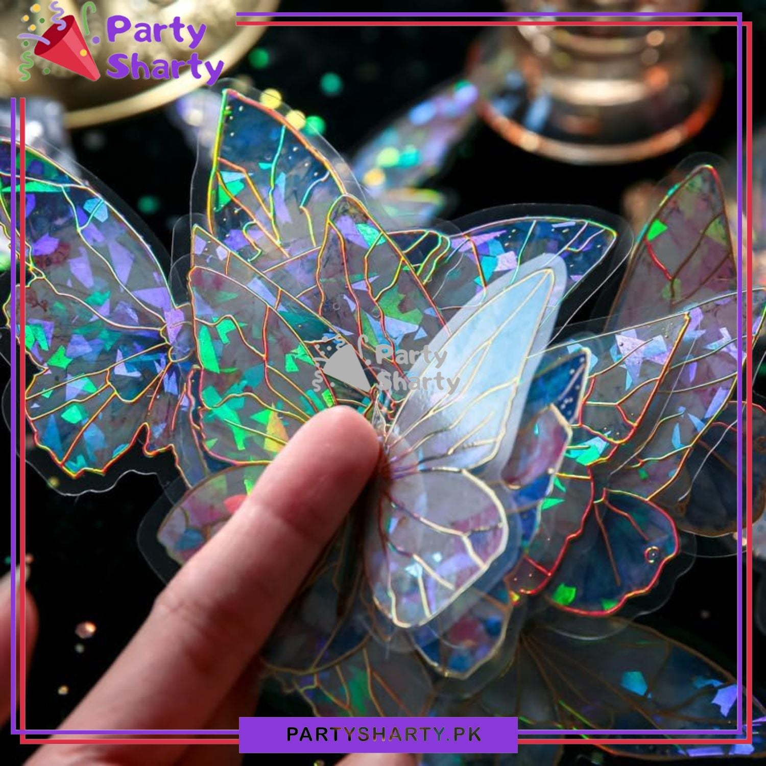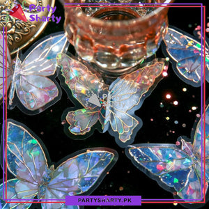 3D Ice Crystals Holographic Shiny Transparent Butterflies - Pack of 10 For Wall or Event Decoration