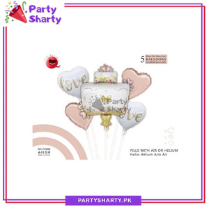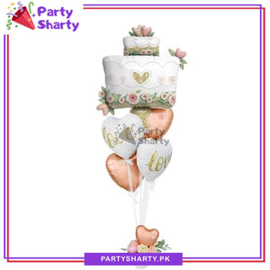 5pcs Cake Shaped with Heart Foil Balloons Set For Wedding Party Decoration