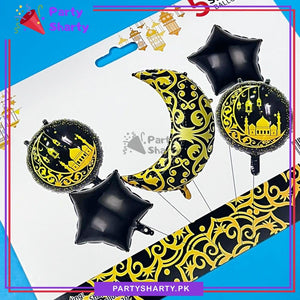 5pcs/set Golden & Black Eid Mubarak Crescent Moon Shape Foil Balloon For Eid Decoration & Celebration