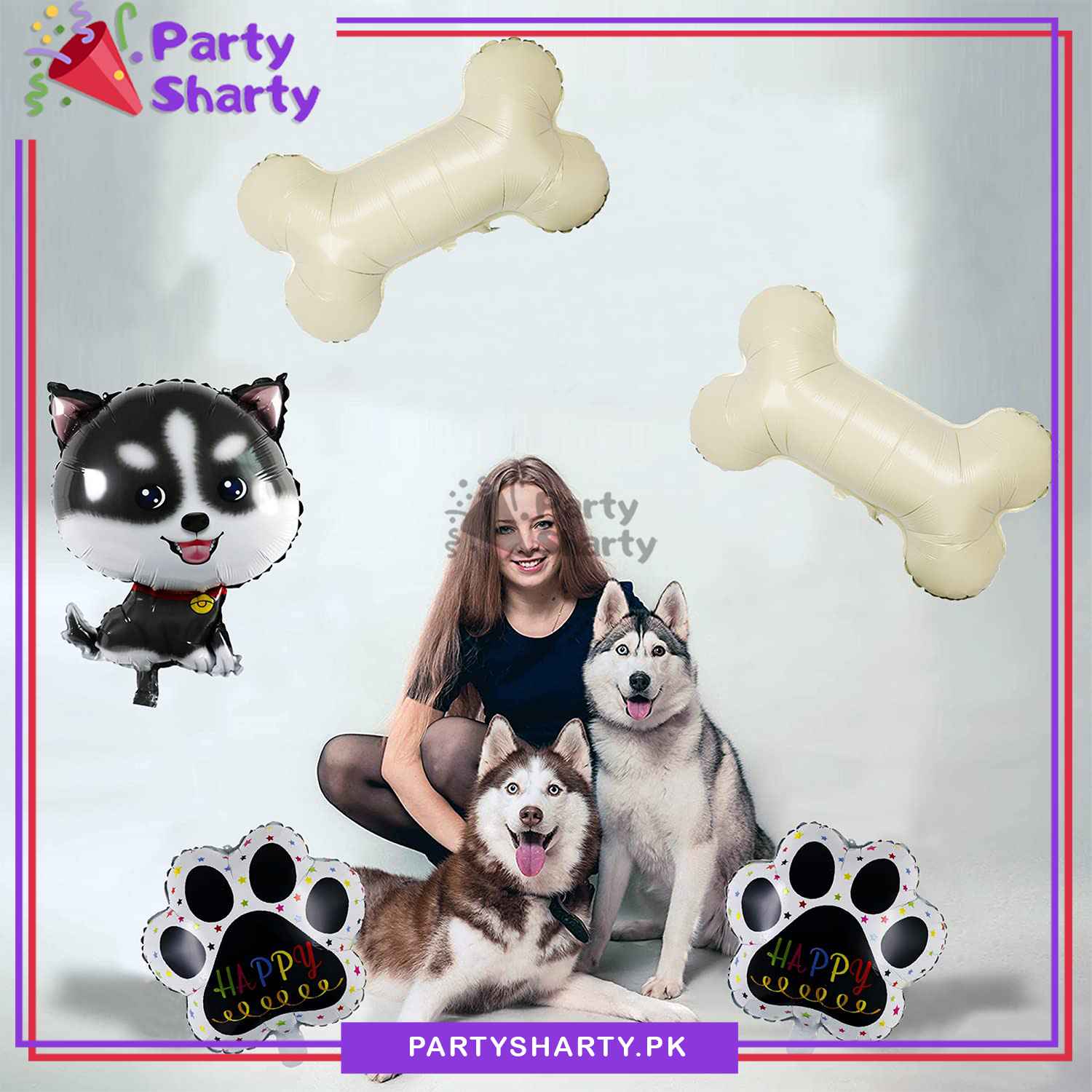 - Package Include: Husky / Corgi Foil Balloon (Size approx. 26 inches) + 2pcs Bone Shaped Foil Balloon (Size Approx. 21 inches) + 2pcs Paw Printed Foil Balloon (Size: Approx. 15 inches)
