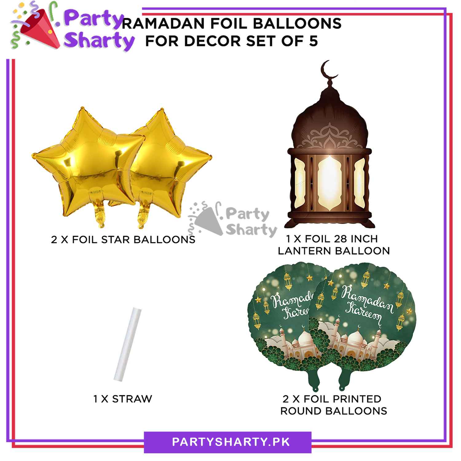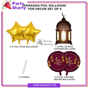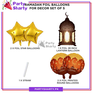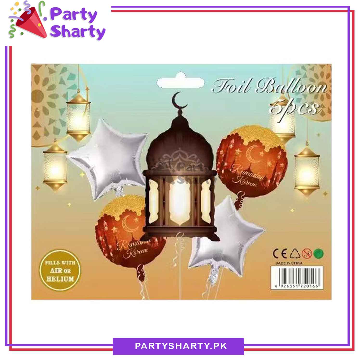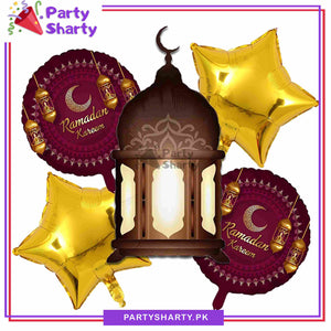 5pcs/set Ramadan Mubarak Lantern Foil Balloon For Ramadan Iftar Party Decoration and Celebration