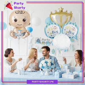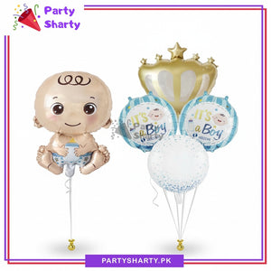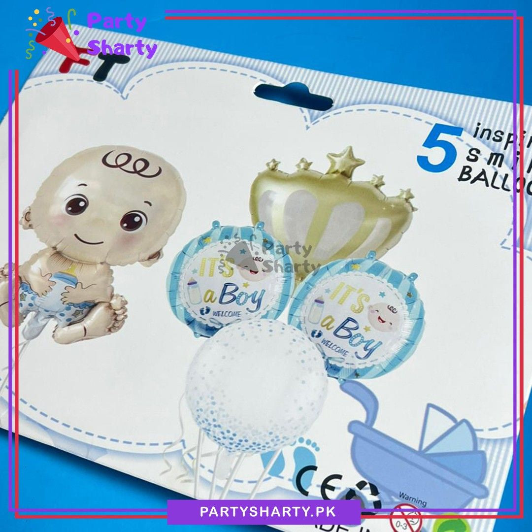 5pcs Stylish Baby with Golden Crown & Its a Boy Round Shaped Foil Balloon For Welcome Baby Decoration