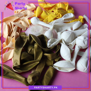 - Package Include: 1pc Winnie The Pooh Theme back Drop Banner (Size: Approx. 22x30inches) + 1pc Pooh Character Foil Balloon (Size: 27inches) + 2pc 12inches Honey Bee Foil Balloon + 1pc 18inches Pooh Heart Shape Foil Balloon + 5inches 10pcs Latex Balloons (Ivory, Golden, Yellow & White Mixed) + 10inches 40 Latex Balloons (Ivory, Golden, Yellow & White Mixed) + 12inches 2pcs Latex Balloons (White & Yellow) + Arch Tape + Glue Dots Sheet + White Ribbon