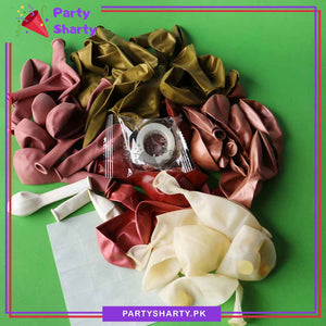 - Package Include: Happy Birthday Banner (Size: Approx 30x22 inches) + 1pc Golden Explosion Star Foil Balloon (Size: Approx. 22 inches)+ 1pc Golden 4 point Star Shaped Foil Balloon (Approx. Size: 10 inches) + 6pcs 12inches Golden Confetti Balloons + 5inches 10pcs Latex Balloons (White, Rose Gold, Golden, Retro Pink & Maroon Mixed) + 40pcs 10inches Latex Balloons (Golden, Rose Gold, Retro Pink & Maroon Mixed) + 12inches 3pcs Latex Balloons (Golden, Rose Gold & Maroon Mixed) + Dotted Tape Sheet + Arch Tape