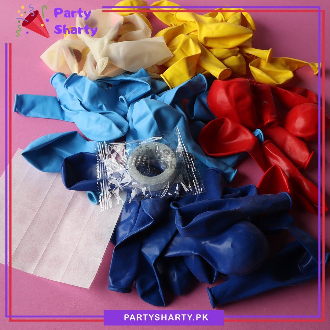 - Package Include: 1pc Happy Birthday Sonic Theme Banner (Size: Approx. 22x30 inches) + 1pc Sonic The Hedgehog Character Foil Balloon (approx. 25 Inches) + 1pc Sonic Theme Round Foil Balloon (Size: Approx. 18 inches) + 6pcs 12inches Multi Confetti Balloons + 2pcs 10inches 4-point Star Foil Balloon (Red & Golden) + 2pcs 12inches Latex Balloons (Red & Sky Blue) +10pcs 5inches Latex Balloons (Dark Blue, Sky Blue, Yellow & Red Mixed) + 40pcs 10inches Latex Balloons (Dark Blue, Sky Blue, Yellow & Red Mixed) + Arch Tape + Dotted Glue Tape Sheet