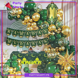 66pcs Dark Green & Golden Ramadan Mubarak Theme Set For Theme Based Decoration & Celebration