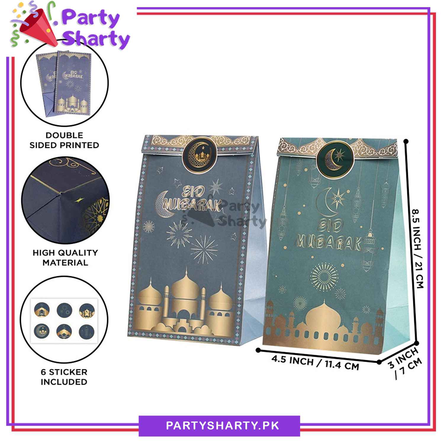 - FEATURED DESIGN: The Eid Mubarak gift bags are printed with stars, moon, lanterns, chandeliers, castles, and fireworks, they look like they're glowing, pretty and Eid themed, perfect for an Eid Milan party!