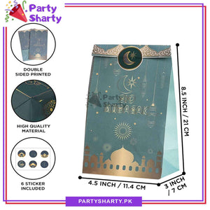 6pcs / Set Eid Mubarak Treat / Goody Bags with Stickers, Eid Party Favor Bags for Eid Giveaways