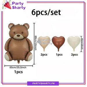 - 6pcs/ Set Teddy Bear Theme with Heart Foil Balloons
