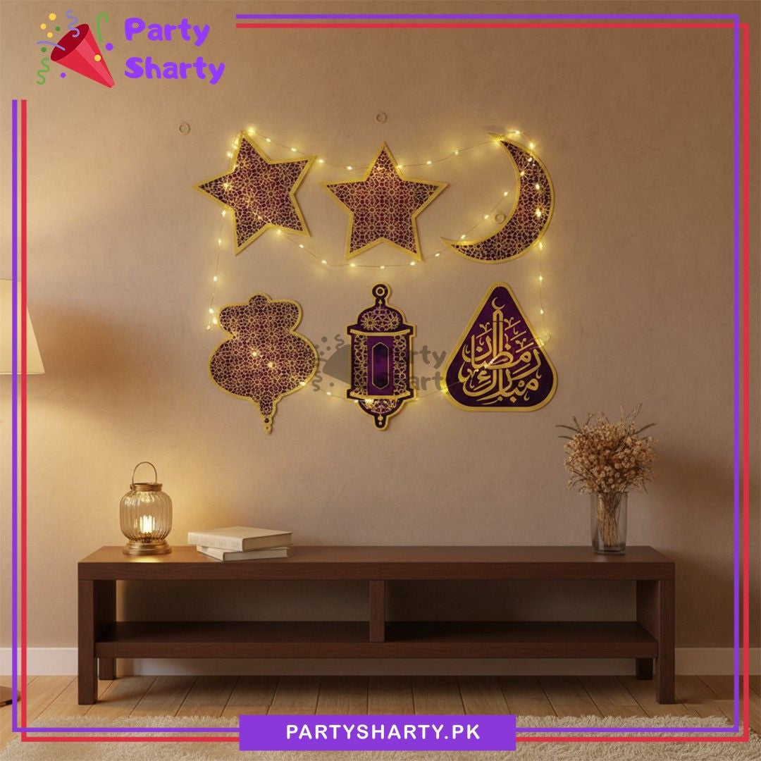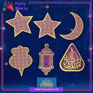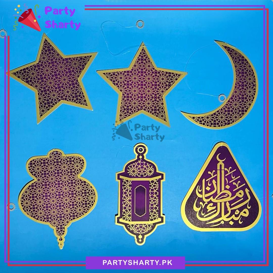 6pcs/Set Purple Ramadan Mubarak Lantern, Moon & Stars Hanging For Ramadan Decoration