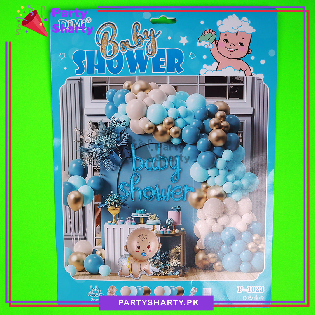 - Package Include: Baby Shower Scripted Foil Banner (Blue) + 1pc Baby Boy Foil Balloon (Size: Approx. 30 inches) + 10inches 50pcs Latex Balloons (Baby Blue, Dusty Blue, Golden & Sand White Mixed) + 5inches 20pcs Latex Balloons (Baby Blue, Dusty Blue, Golden & Sand White Mixed) + Arch Tape + Dotted Tape Sheet