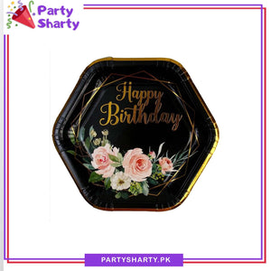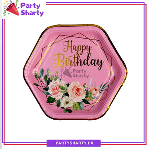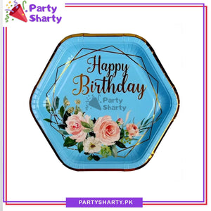 7inches Happy Birthday Flowers Printed Hexagonal Paper Plates For Party Decoration & Celebration