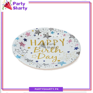 7inches Happy Birthday Multi Star Printed Paper Plates For Birthday Party Decoration & Celebration