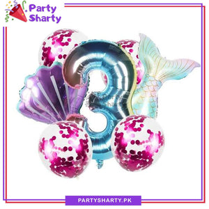 7Pcs/set Gradient Color Mermaid Number Foil Balloon Party Decoration