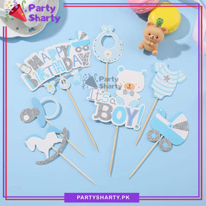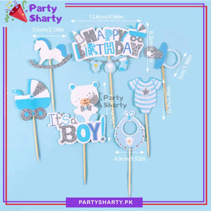 7pcs/Set Its a Boy Theme Cake Topper for Welcome Baby, Gender Reveal or Baby Shower Decoration and Celebration