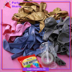 - Package Include: 2pcs 18inches Daisy Flower Foil Balloons + 56pcs 10inches Latex Balloons (Lake Blue, Haze Grey & Golden Metallic Mixed) + 20pcs 5inches Latex Balloons (Lake Blue, Haze Grey, Pink & Golden Metallic Mixed) + Arch Tape + Dotted Glue Tape
