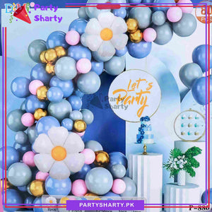80pcs Lake Blue, Haze Grey, Pink & Golden Metallic With Daisy Flower Foil Balloons Set for Theme Party Decoration