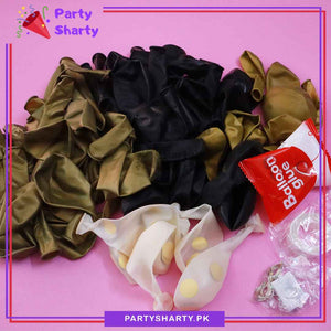 - Party Decoration Kit - 13pcs Happy Birthday Foil Banner - Black + 22 inches 3pcs Exploding Star (Golden) + 12inches 4pcs Latex Balloons (Black & Golden Mixed) + 10 inches 40pcs Latex Balloons (Black & Golden Mixed) + 5 inches 16pcs Latex Balloons (Black & Golden Mixed) + Arch Tape + Dotted Tape + 1.25m Fairy Light